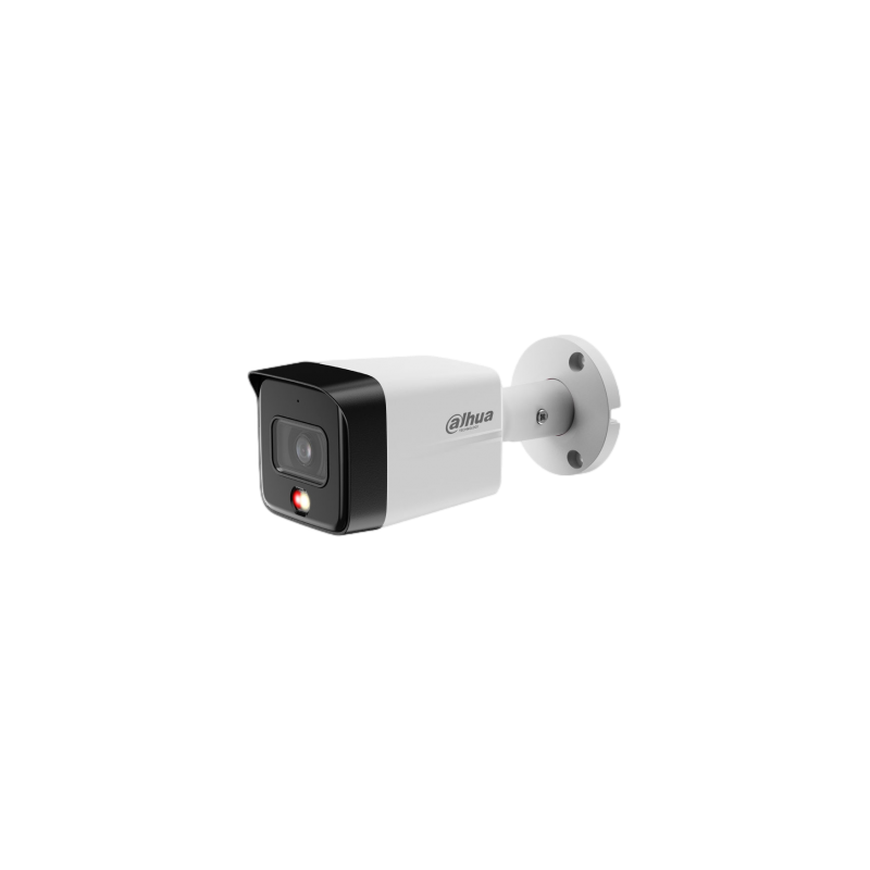 Cámara IP Dahua con resolución de 6 megapíxeles, imagen fluida a 20 imágenes por segundo, nivel de iluminación mínima de 0,007 lux en color y 0,0007 lux en blanco y negro, iluminación inteligente Dual Light con infrarrojo y luz cálida hasta 30 metros, óptica fija de 2,8 mm, ángulo de visión horizontal de 110 grados, detección humana inteligente, micrófono integrado y protección IP67. Alimentada por de 12 V CC o PoE, incluye función de filtrado avanzado y compresión eficiente.