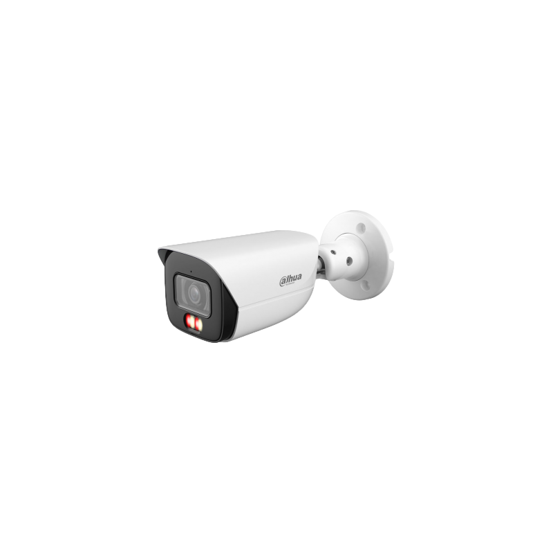 Cámara IP bullet Smart Dual Light Dahua WizMind 5 Series, 5 megapíxeles a 25 o 30 imágenes por segundo, filtro IRC, sensibilidad de 0,0009 lux en color, IR y luz cálida con alcance hasta 50 metros, óptica fija de 2,8 mm, WDR de 120 dB, analítica IVS con clasificación de humano, vehículo y animal, SMD 4.0, función AcuPick, detección facial y conteo de personas, generación de metadatos de vídeo y mapa de calor, entrada y salida de alarma, entrada y salida de audio con micrófono integrado, ranura MicroSD hasta 1 TB, protección IP67, tecnología PoE+ y ePoE.