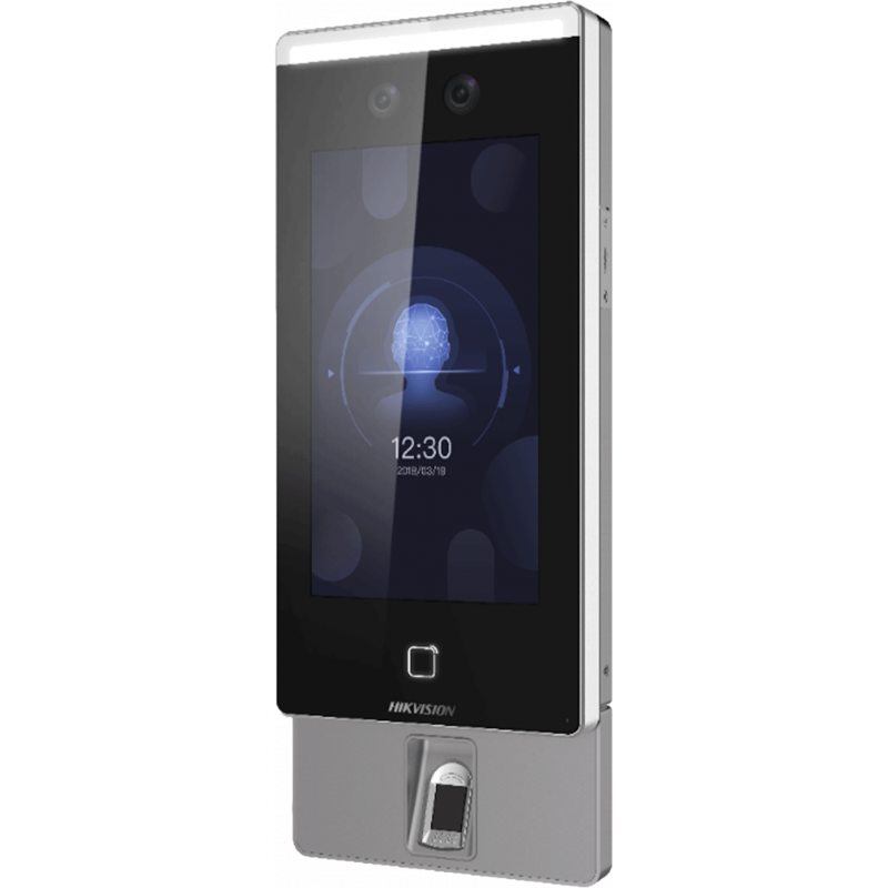 Terminal Hikvision de control de acceso autónomo, reconocimiento facial hasta 5000 caras, pantalla táctil LCD de 7 pulgadas, lector de huella y tarjeta Mifare, alerta de
