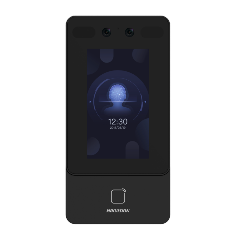 Control de acceso y presencia con reconocimiento facial, MF DESFire, QR y PIN. Capacidad para 1.500 usuarios y 150.000 registros, funciones de controladora integrada, pantalla táctil TFT de 4,3 pulgadas, grado de protección IP65 para uso exterior y tecnología PoE estándar. Comunicaciones TCP/IP, WiFi, USB, RS485 y Wiegand. Compatible con iVMS-4200 e Hik-Connect.