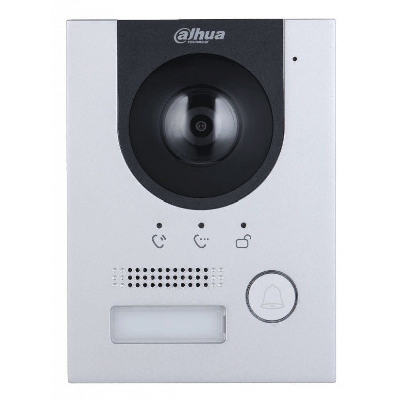 Estación de exterior IP para vivienda, resolución de 2 megapíxeles a 25 imágenes por segundo, óptica gran angular de 168,6° con WDR de 120 dB, audio bidireccional con cancelación de eco y reducción digital de ruido, apertura remota y gestión desde aplicación móvil, ranura para tarjeta MicroSD de hasta 256 GB, alimentación PoE estándar, instalación en superficie o empotrada, protección IP65 e IK07.