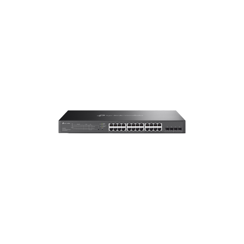 Omada Smart Switch de 28 puertos Gigabit, con 24 puertos PoE+, administración cloud centralizada. Compatible con IEEE 802.3af/at, carcasa metálica.