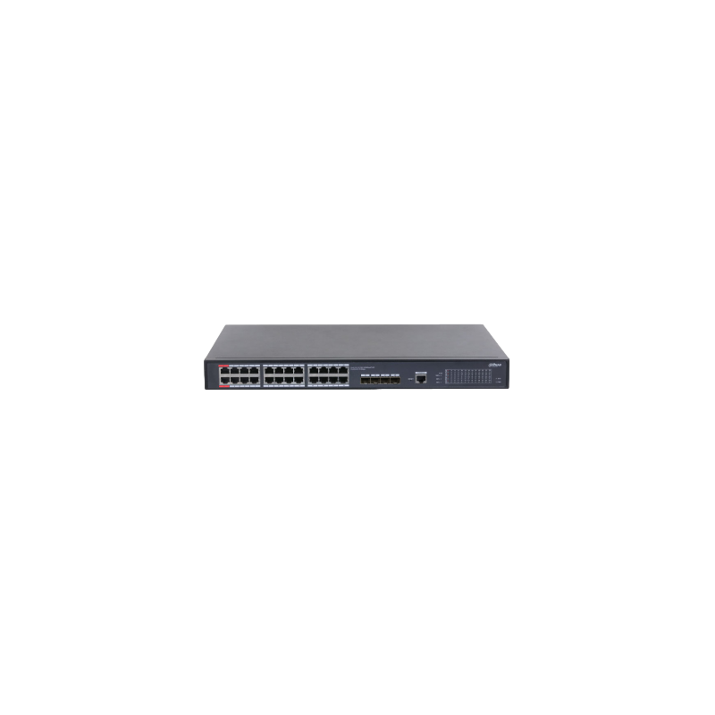 Switch gestionable L2+ de 24 puertos PoE Gigabit con 4 puertos uplink SFP+ de 10 Gbps. Entrega PoE total de 360 W, puertos BT con capacidad de hasta 90 W, gestión cloud DoLynk Care, acceso web y por SNMP. Integra agregación de enlaces y soporta protocolos STP, RSTP y ERPS para estabilidad y redundancia. Optimizado para redes empresariales, instituciones y sistemas de videovigilancia.