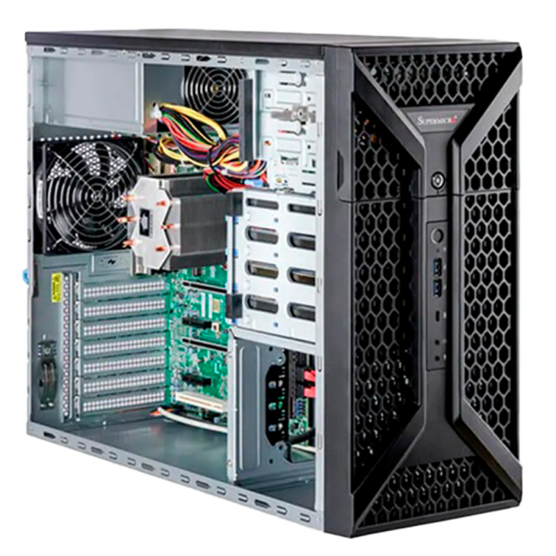 Workstation diseñada para la plataforma NX Witness, equipada con sistema operativo Windows 11 Profesional de 64 bits, procesador Intel Core i7 de 12ª generación, 32GB de memoria RAM DDR5 y unidad SSD NVMe de 480GB. Incluye GPU Nvidia Quadro para procesamiento gráfico avanzado, motherboard Supermicro y fuente de alimentación de alta eficiencia. Formato sobremesa mid-tower, conectividad Ethernet 1GbE y 2,5GbE, dimensiones de 193 x 424 x 536 milímetros y peso de 13,61 kg. Garantía de 2 años. Incluye accesorios de montaje, cable de alimentación y documentación.