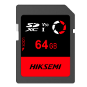 Tarjeta SD Hikvision, capacidad de 64 GB, rendimiento clase 10, lectura de hasta 180 MB/s, escritura de hasta 150 MB/s, hasta 3.000 ciclos de lectura y escritura, adecuada para CCTV en resolución 4K, cámaras de tráfico y sistemas de movilidad, tecnología NAND TLC, alta durabilidad y estabilidad para aplicaciones de videovigilancia.