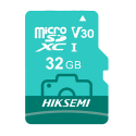 Tarjeta microSD Hikvision, capacidad de 32 GB, diseñada para uso profesional en CCTV, gaming y tablets, clasificación C10, U3, V30, velocidad máxima de lectura 100 MB/s, velocidad máxima de escritura 70 MB/s, soporta hasta 300 ciclos de lectura y escritura, tecnología NAND TLC.