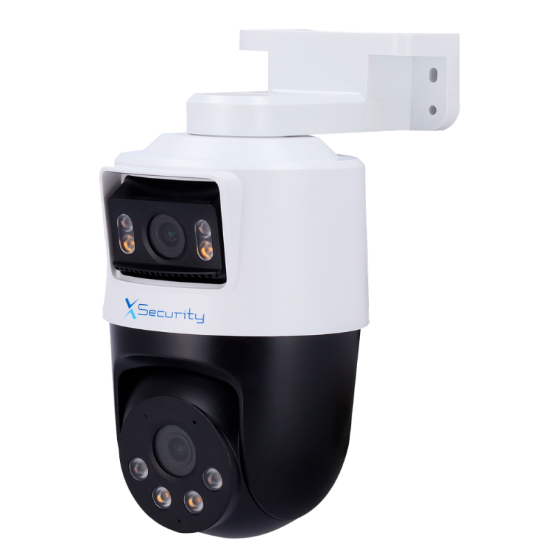 Cámara PT IP X-Security Wizcolor con resolución de 2 megapíxeles, sensor CMOS progresivo 1/2.9, doble lente fija y PT de 3,6 mm, imágenes en color reales todo el día, rango de luz blanca hasta 30 metros, WDR de 120 dB y reducción de ruido digital 3DNR. Incluye micrófono y altavoz integrados, ranura para tarjeta MicroSD de hasta 256 GB, clasificación de humano y vehículo gracias a la tecnología WizSense, protección perimetral, búsqueda inteligente, SMD Plus y función de disuasión activa por luz y sonido. Impermeable, con protección IP66 y alimentación PoE.