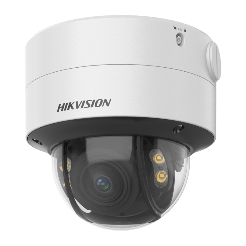 Cámara Domo IP Hikvision, 4 MP, lente varifocal motorizada de 3.6 a 9 mm, luz blanca 40 metros, ColorVu, PoE, IP67, IK10.Recipiente :