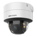 Cámara domo Hikvision gama PRO, resolución de 2 megapíxeles 1920x1080, lente varifocal motorizada de 2.8 a 12 mm con autofocus, iluminación color las 24 horas gracias a ColorVu y luz blanca con alcance de 40 metros, tecnología PoC para alimentación por cable coaxial, impermeable IP68 y protección antivandálica IK10.