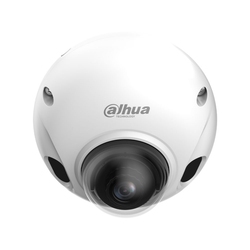 Domo IP móvil de 2MP Dahua, video de alta definición a 25 o 30 imágenes por segundo, ICR, iluminación mínima de 0,002 lux, visión nocturna infrarroja hasta 20 metros, óptica fija de 2,1 mm con campo visual de 125 grados, WDR de 120 dB, reducción de ruido 3D NR, funciones avanzadas como conteo de pasajeros y detección facial basada en inteligencia artificial, micrófono integrado, ranura microSD para almacenamiento de hasta 256 GB, alimentación mediante de 12 V CC y PoE, protección IP67 e IK10.