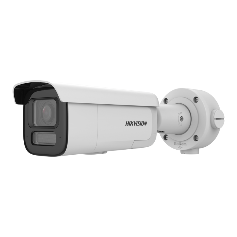 Cámara Bullet IP Hikvision de la gama PRO con resolución de 8 megapíxeles, sensor CMOS de escaneo progresivo de 1/1,8 pulgadas, lente varifocal motorizada de 2,8 a 12 mm, visión nocturna con infrarrojos hasta 60 metros, sirena y flash de luz blanca disuasorios, AcuSense y detección de movimiento 2.0, clasificación de vehículos y personas, Face Capture, protección IP67, resistencia antivandálica IK10, almacenamiento en tarjeta MicroSD de hasta 512 GB, audio bidireccional con dos micrófonos y altavoz integrados, compatible con PoE+, protocolos ONVIF y software de gestión. Incluye caja de conexiones DS-1260ZJ, material de instalación y empaquetado Eco Friendly.