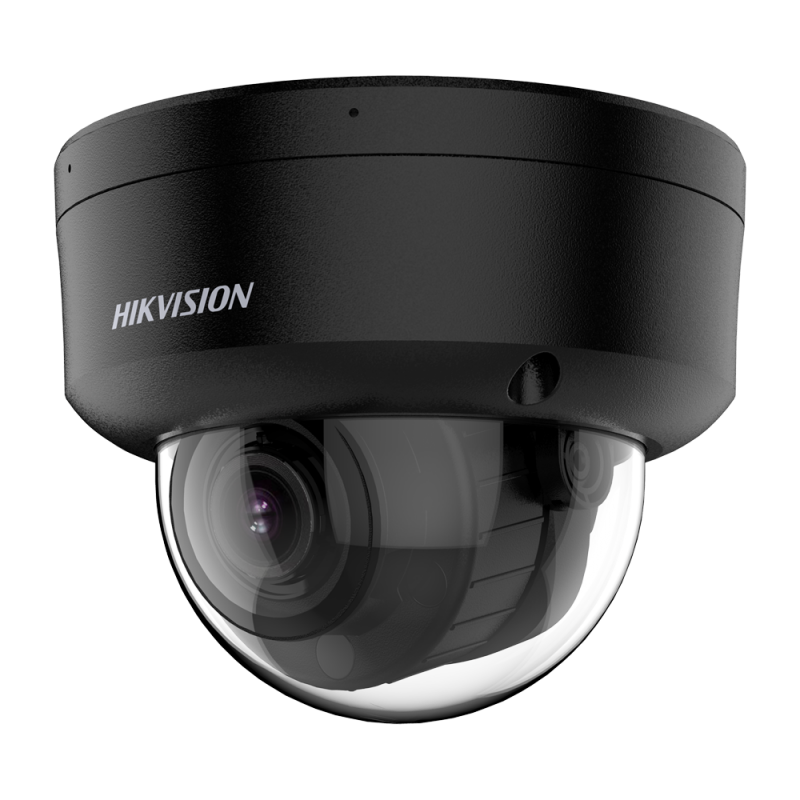 Cámara domo IP Hikvision gama PRO, resolución de 6 megapíxeles 3200x1800, lente varifocal motorizada de 2.8 a 12 mm, iluminación híbrida IR y luz blanca de hasta 40 metros, audio con micrófono dual integrado, detección inteligente por Deep Learning AcuSense para clasificación de humanos y vehículos, Face Detection, protección IP67, antivandálica IK10, ranura MicroSD de hasta 512 GB, alarma y alimentación por PoE.
