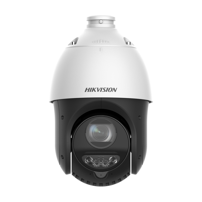 Speed dome IP Hikvision gama PRO de 4 megapíxeles con lente motorizada de 4.8 a 120 mm, zoom óptico 25X, sensor CMOS progresivo de 1/2.8", tecnología Ultra Low Light con DarkFighter, infrarrojos para 100 metros, velocidad de rotación de 80 grados por segundo, detección inteligente AcuSense, filtro de falsa alarma para vehículos y personas en cruce de línea e intrusión de área, Face Capture con captura simultánea de hasta 5 rostros, conteo de personas por región, seguimiento inteligente, IR CUT, WDR de 120 dB, reducción de ruido digital 3D-DNR, ranura MicroSD para hasta 512 GB, audio bidireccional con micrófono dual integrado y altavoz, 1 entrada y 1 salida de alarma, defensa activa mediante sirena y luz, software de gestión y visualización remota, compatibilidad ONVIF, alimentación PoE+ IEEE802.3at, protección IP67 y contra sobretensiones de hasta 6000 V, incluye soporte de pared DS-1618ZJ.