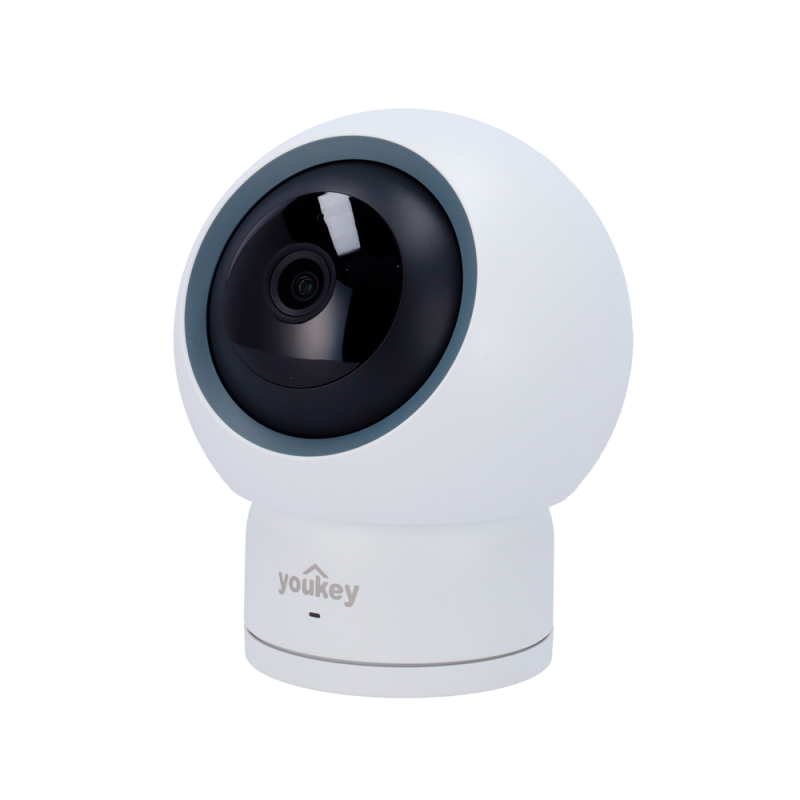 Cámara PT Wi-Fi de 4 megapíxeles con lente de 2,8 mm, iluminación infrarroja de hasta 5 metros, audio bidireccional con micrófono y altavoz integrados. Ofrece funciones avanzadas como detección de movimiento, seguimiento y detección de cuerpo humano, detección de mascotas, detección de llanto y audio. Permite movimiento horizontal de 0 a 350 grados y movimiento vertical de -10 a 55 grados. Compatible con conexión Wi-Fi de 2,4 GHz y 5 GHz, admite almacenamiento local mediante microSD hasta 256GB, así como almacenamiento en la nube a través de la aplicación Youkey life. Alimentación mediante USB tipo-C.