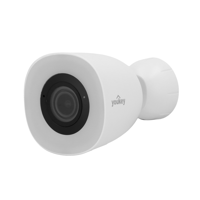 Cámara Bullet Youkey 4MP, lente de 2,8 mm, luz blanca de 5 metros, detección de movimiento, vehículo, cuerpo humano y llanto, conexión Wi-Fi doble banda, micrófono y altavoz incorporados, soporte para microSD, audio en doble vía, almacenamiento en la nube mediante la aplicación Youkey life.