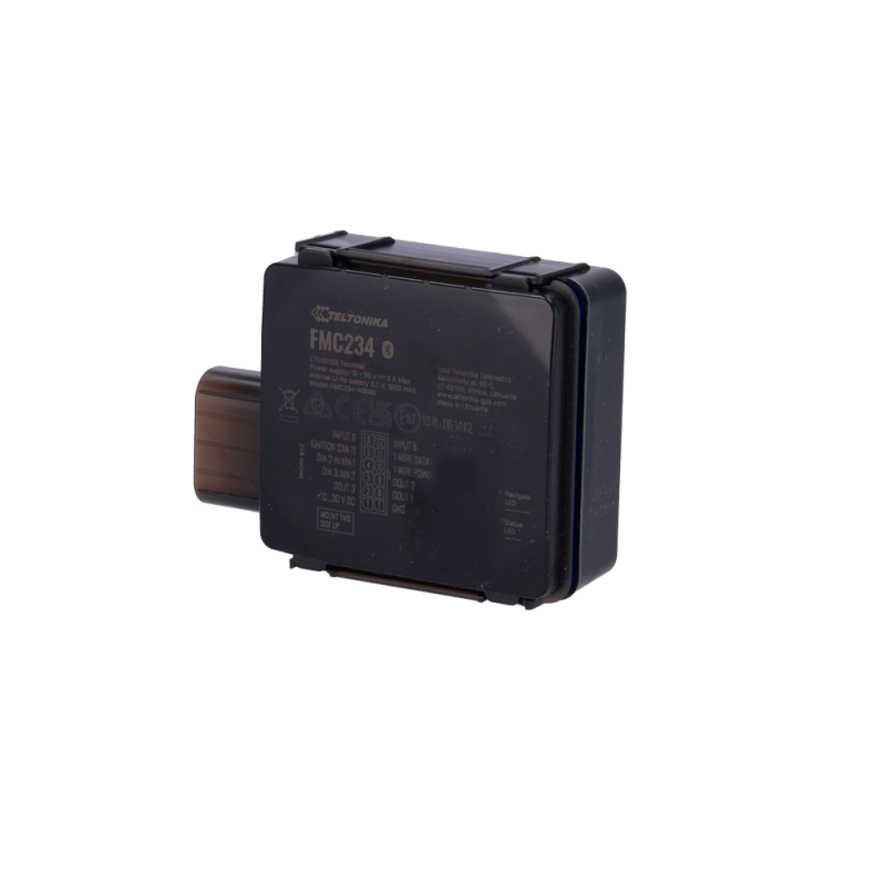 Rastreador GPS Teltonika FMC234 con batería interna de alta capacidad de 1000 mAh, diseñado para una operación autónoma prolongada, incluso tras la desconexión de la alimentación externa. Incluye antenas GNSS y LTE internas, entradas digitales, analógicas, negativas y de impulso configurables, además de tres salidas integradas. Dispone de conectividad Bluetooth y batería de respaldo, permitiendo lectura precisa de medidores de flujo de combustible mediante entrada de impulso. Optimo para aplicaciones como telemática para seguros, gestión de remolques, recuperación vehicular y monitoreo de activos móviles de construcción. Equipado con carcasa certificada IP67 y mecanismo de cierre de dos fases, asegura funcionamiento bajo condiciones ambientales adversas.