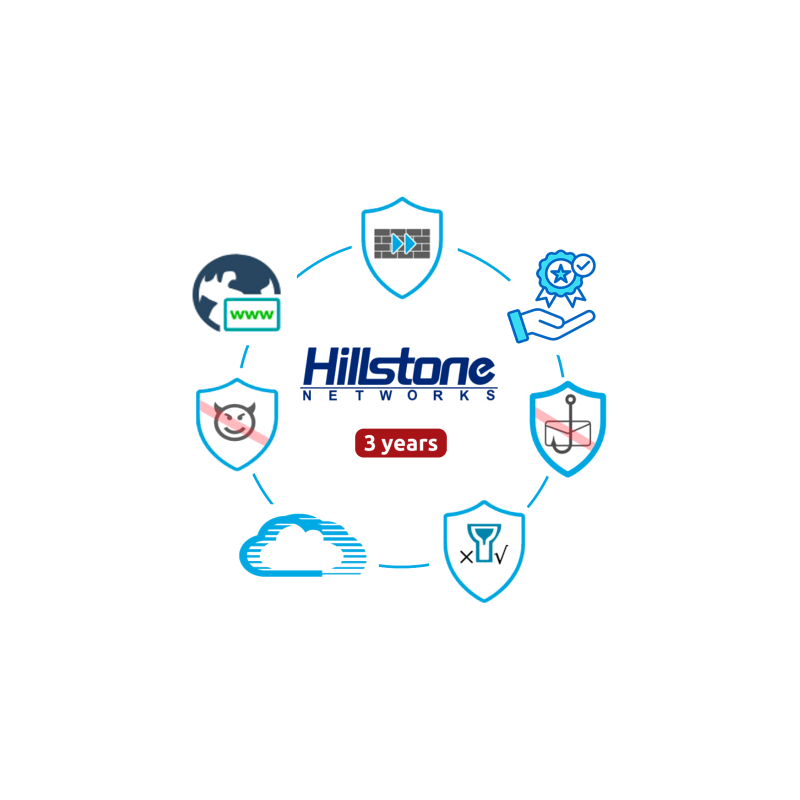 Licencia electrónica Hillstone de 3 años, bundle premium seguridad, actualizaciones incluidas, para serie NGFW A200, una por equipo.Recipiente :