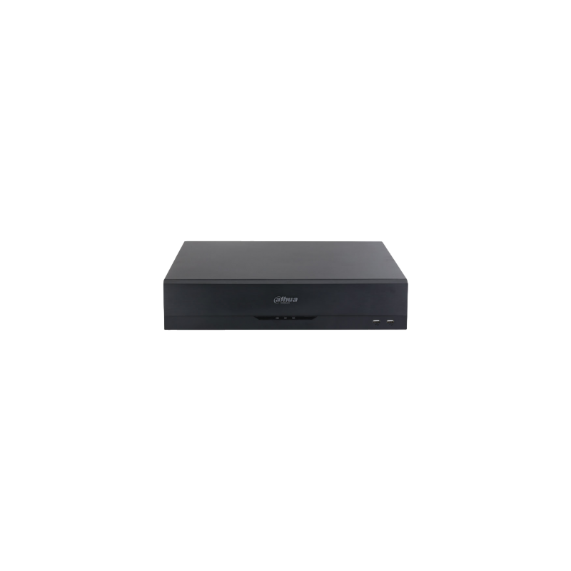 NVR Dahua WizSense de 32 canales con 16 puertos PoE, resolución de hasta 32MP, inteligencia artificial avanzada desde grabador y cámara para análisis facial, metadatos, reconocimiento de matrículas ANPR, SMD Plus, conteo de personas, mapa de calor, control de EPI y más, salidas de vídeo 8K, soporta 8 discos duros con RAID y tecnología ePoE.