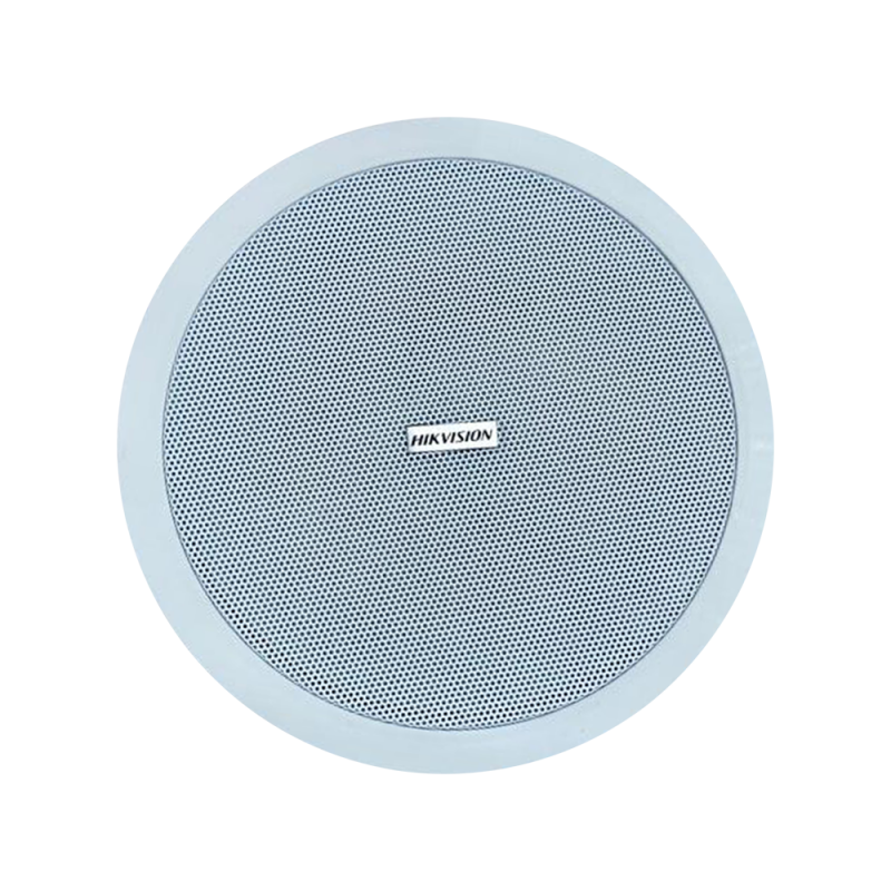 Altavoz de techo analógico Hikvision, potencia de 10 W, impedancia de 8 ohmios, sensibilidad de 91 dB. Permite una reproducción eficiente del sonido en espacios interiores, adecuada para aplicaciones de megafonía en oficinas, centros comerciales y entornos industriales. La respuesta en frecuencia es de 80 Hz a 20 kHz, equipado con altavoz de 5 pulgadas, diseñado para ofrecer mensajes claros, avisos y música ambiente en instalaciones profesionales.