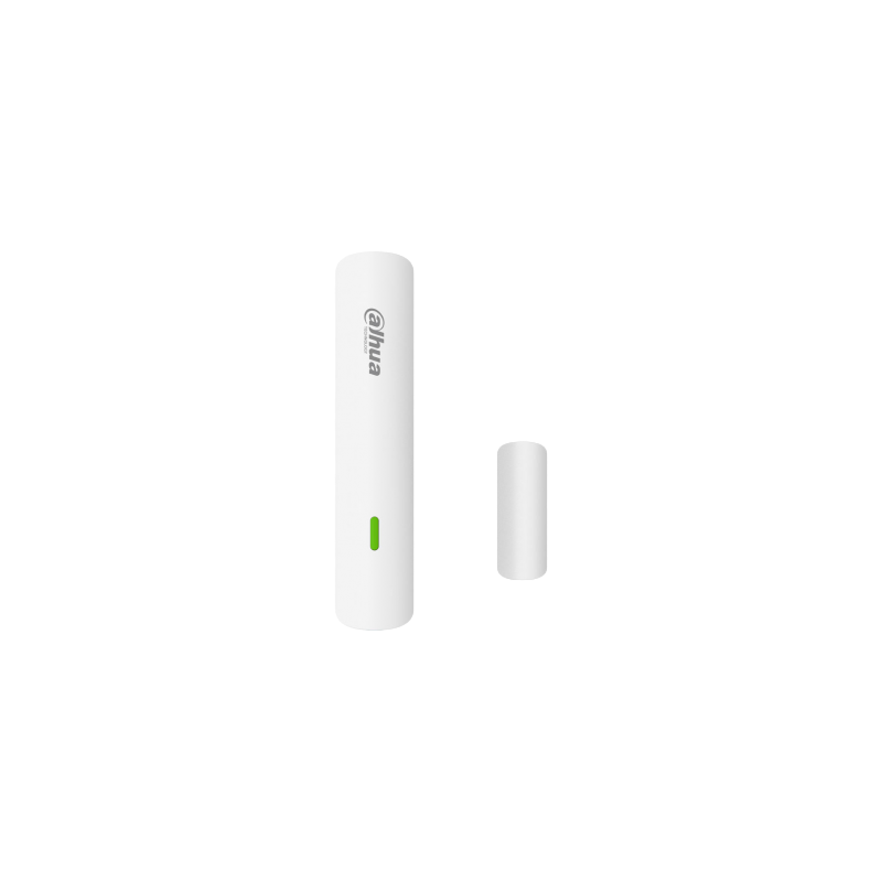 Detector magnético vía radio Dahua, diseñado para puertas no metálicas. Contacto reed con distancia de activación menor a 40 milímetros, incluye entrada de alarma cableada. Comunicación bidireccional a 868 megahercios con cifrado AES128 y salto de frecuencia para una transmisión estable. Permite supervisión de temperatura y nivel de batería, alcance de hasta 1.400 metros en espacio abierto, equipado con protección frente a interferencias EMI y RFI.