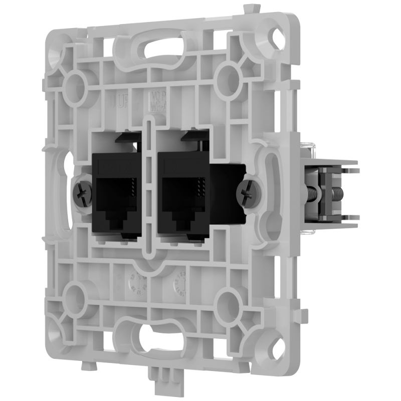 Enchufe Ethernet de dos puertos, para cables CAT.6 y CAT.5e, datos a 1 Gbit/s hasta 100 metros, uso interior, protección IP20.