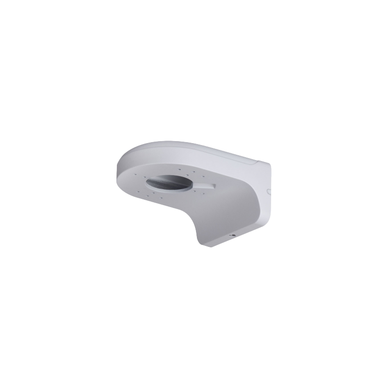 Soporte de montaje mural Dahua PFB204W construido en aluminio y acero SECC, soporta hasta 1 kg, adecuado para instalar cámaras en pared en espacios interiores o exteriores, su estructura metálica ofrece resistencia y facilidad de instalación, incluye anclajes.