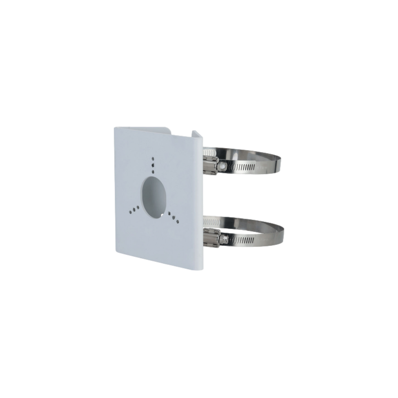 Soporte para montaje en poste Dahua PFA157, admite una carga de hasta 5 kg, fabricado en aleación de aluminio, diseñado para instalaciones en postes de 80 a 150 milímetros de diámetro, este soporte es compatible con una amplia variedad de cámaras Dahua, ofrece una solución resistente y fiable alineada con las exigencias de entornos industriales y de videovigilancia, incluye abrazaderas metálicas y tornillería, estructura ligera y de alta durabilidad.
