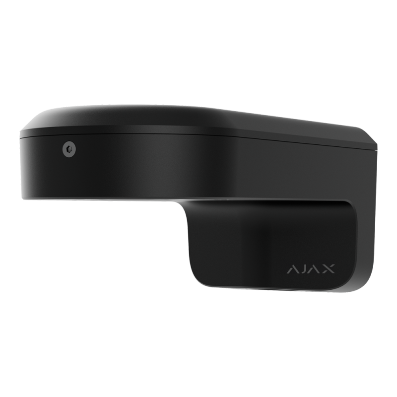 Soporte para cámaras Bullet, Domo y Turret Ajax, adecuado para instalación en pared o poste, color negro. Compatible con uso exterior e interior. Dimensiones de 96 × 117 × 237 mm, peso de 810 g. Incluye plantilla de instalación, kit de instalación y guía rápida.