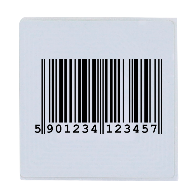 Protección electrónica antihurto EAS, Tecnología RF 8,2 MHz, Etiqueta blanda con pegatina y código de barras, Dimensiones: 40 (An) x 40 (Al) mm, Compatible con antenas RF, Caja de 1.000 unidades