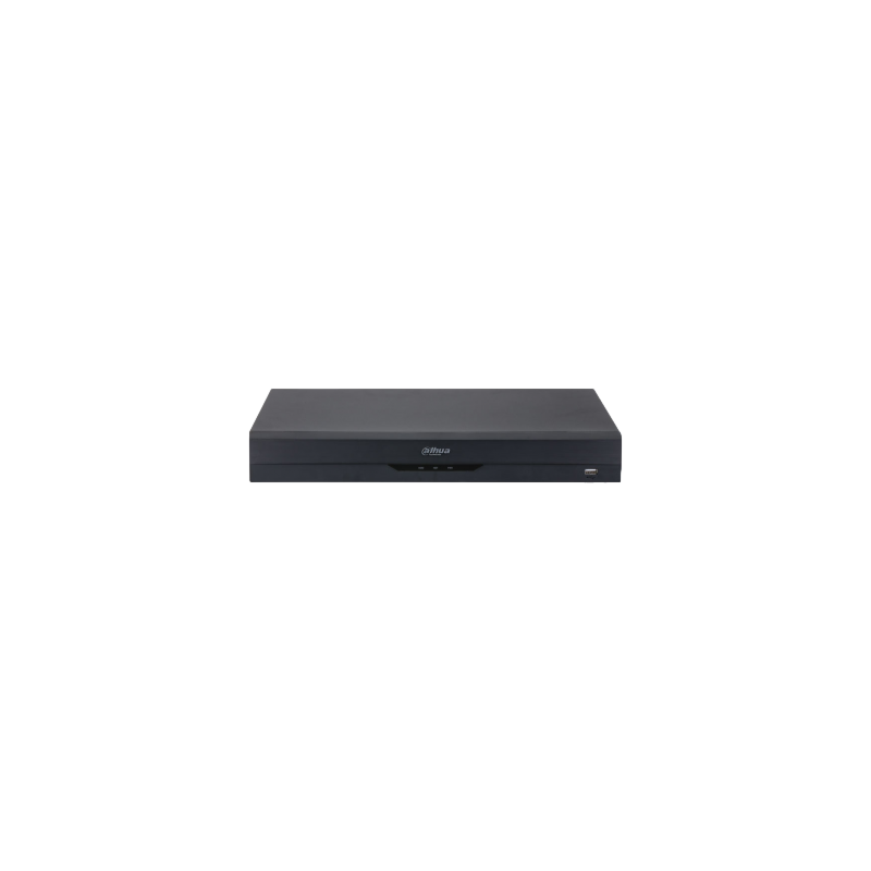 XVR 5 en 1 Dahua de 16 canales, compatibilidad con formatos AI y Smart H265+, admite 16 canales BNC en alta definición y 8 canales IP, grabación de hasta 5MP a 25 imágenes por segundo, ancho de banda de 128 Mbps, salidas HDMI con soporte 4K y VGA a 1080P, audio bidireccional y transmisión de audio por coaxial, funciones de reconocimiento facial, SMD Plus, protección perimetral y AcuPick, soporte para 2 discos duros, un puerto RJ45, USB 3.0, alimentación de 12V CC.